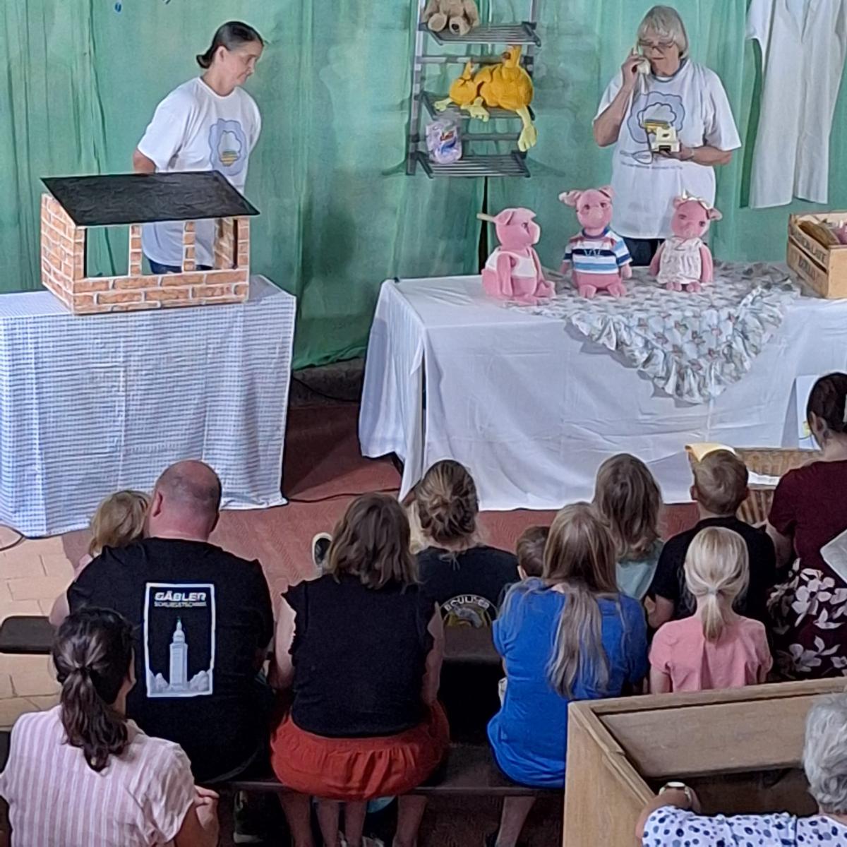 Das Besondere: Auf der Bühne standen nicht nur die Puppen, sondern am Ende auch die Kinder selbst. Mit strahlenden Gesichtern schlüpften sie in die Rollen der kleinen Schweinchen und ließen die Geschichte auf ihre Weise lebendig werden. „Es war wunderschön zu sehen, wie die Kinder sofort mitgemacht haben. Ihre Begeisterung hat alle angesteckt“, berichteten Besucher. Gespielt wurde das Stück von einem eingespielten Duo: einer 80-jährigen Mutter und ihrer 52-jährigen Tochter. Mit viel Liebe zum Detail, Humor und handwerklichem Geschick erweckten sie die bekannten Figuren zum Leben. „Das war Theater mit Herzblut, generationsübergreifend und mitten aus dem Leben“, so das Fazit einer Zuschauerin. Buchstäblich eingeläutet wurde das bunte Geschehen von einem besonderen Klangteppich: Ord. Präd. Fred René Herrmann läutete die Glocken der Kirche per Hand. So wusste im ganzen Dorf jeder: Heute ist in der Kirche etwas los! Drinnen erfüllte fröhliches Kinderlachen die Kirchenbänke, draußen erklangen die Glocken – ein Bild, das Gemeinschaft auf besondere Weise spürbar machte. Der lang anhaltende Applaus zeigte, dass der Nachmittag die Herzen der Besucher berührt hatte. „Solche Momente vergisst man nicht so schnell“, hieß es am Ausgang immer wieder.
